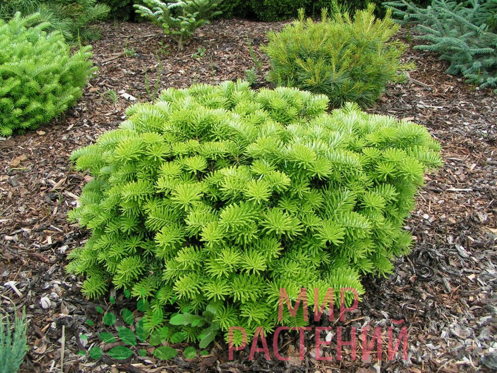 Внешний вид: Растение формирует плотную симметричную крону подушковидной или шаровидной формы. Хвоя короткая, мягкая, темно-зеленого цвета с серебристой изнанкой, расположена радиально вокруг побегов. Молодые приросты имеют более светлый салатовый оттенок. Растет очень медленно, ежегодный прирост составляет всего 3-5 см.