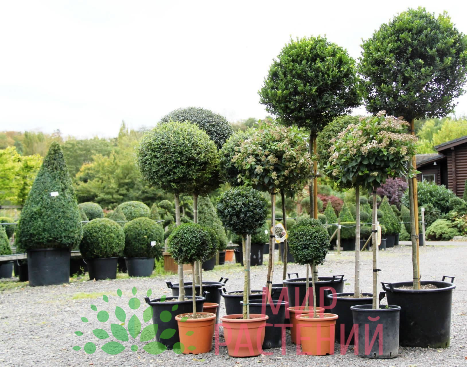 Выращивание и уход: Для поддержания идеальной формы требует посадки на солнечном месте с равномерным освещением со всех сторон. Почвы предпочтительны плодородные, хорошо дренированные, без застоя влаги. Обязательна регулярная стрижка 2-3 раза за сезон для сохранения шаровидной формы. Уход включает регулярный полив, мульчирование и подкормки специализированными удобрениями.
