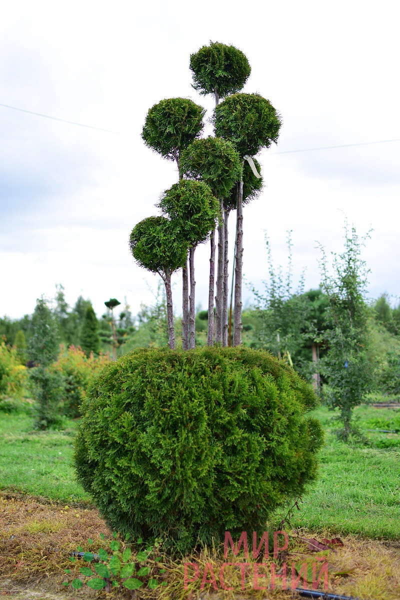 Выращивание и уход: Предпочитает солнечные места или легкую полутень. Почвы требуются хорошо дренированные, умеренно влажные, плодородные. Для поддержания топиарной формы необходима регулярная стрижка 2-3 раза за сезон. Уход включает систематический полив, мульчирование приствольного круга и подкормки специализированными удобрениями для хвойных растений.